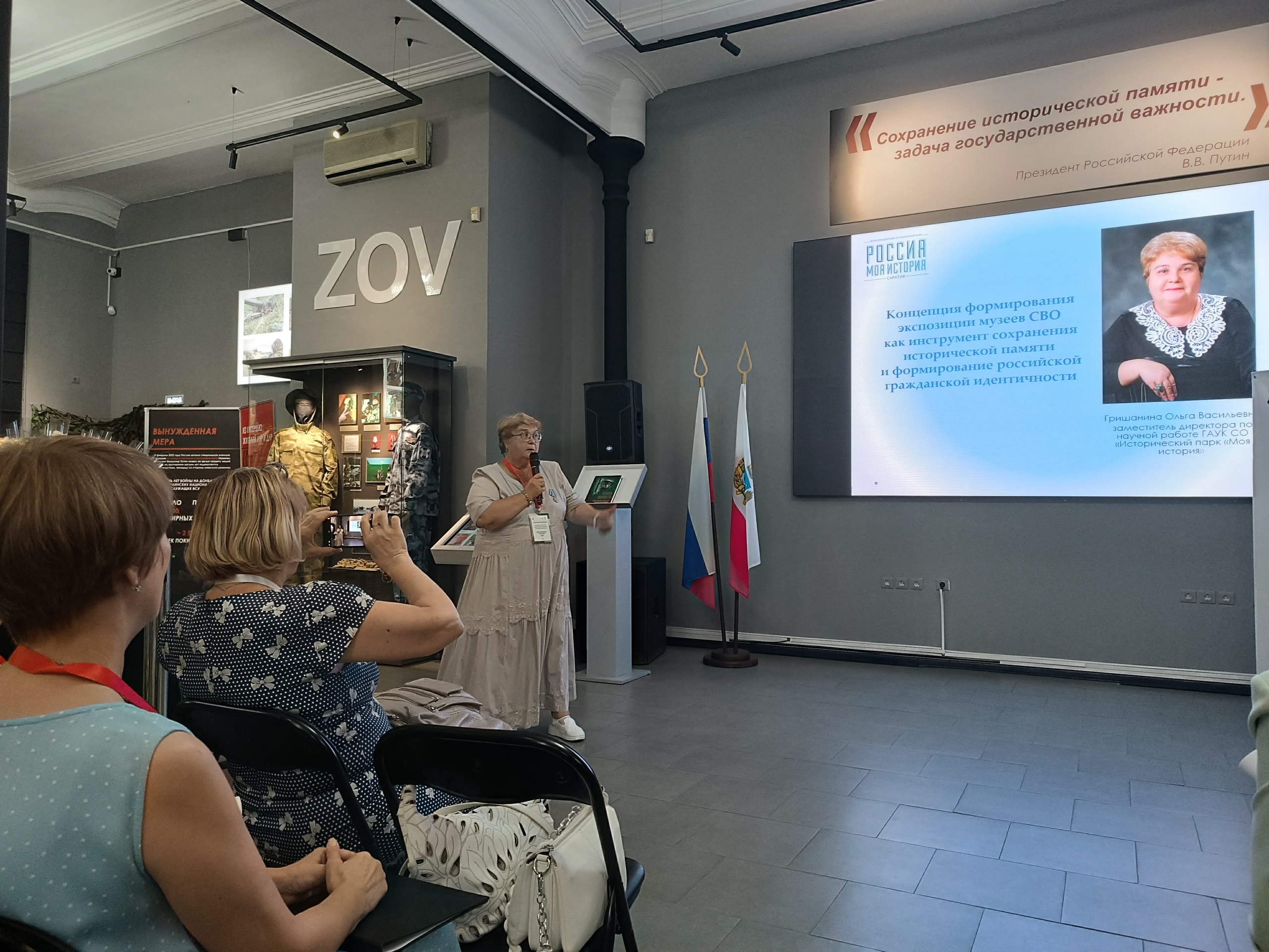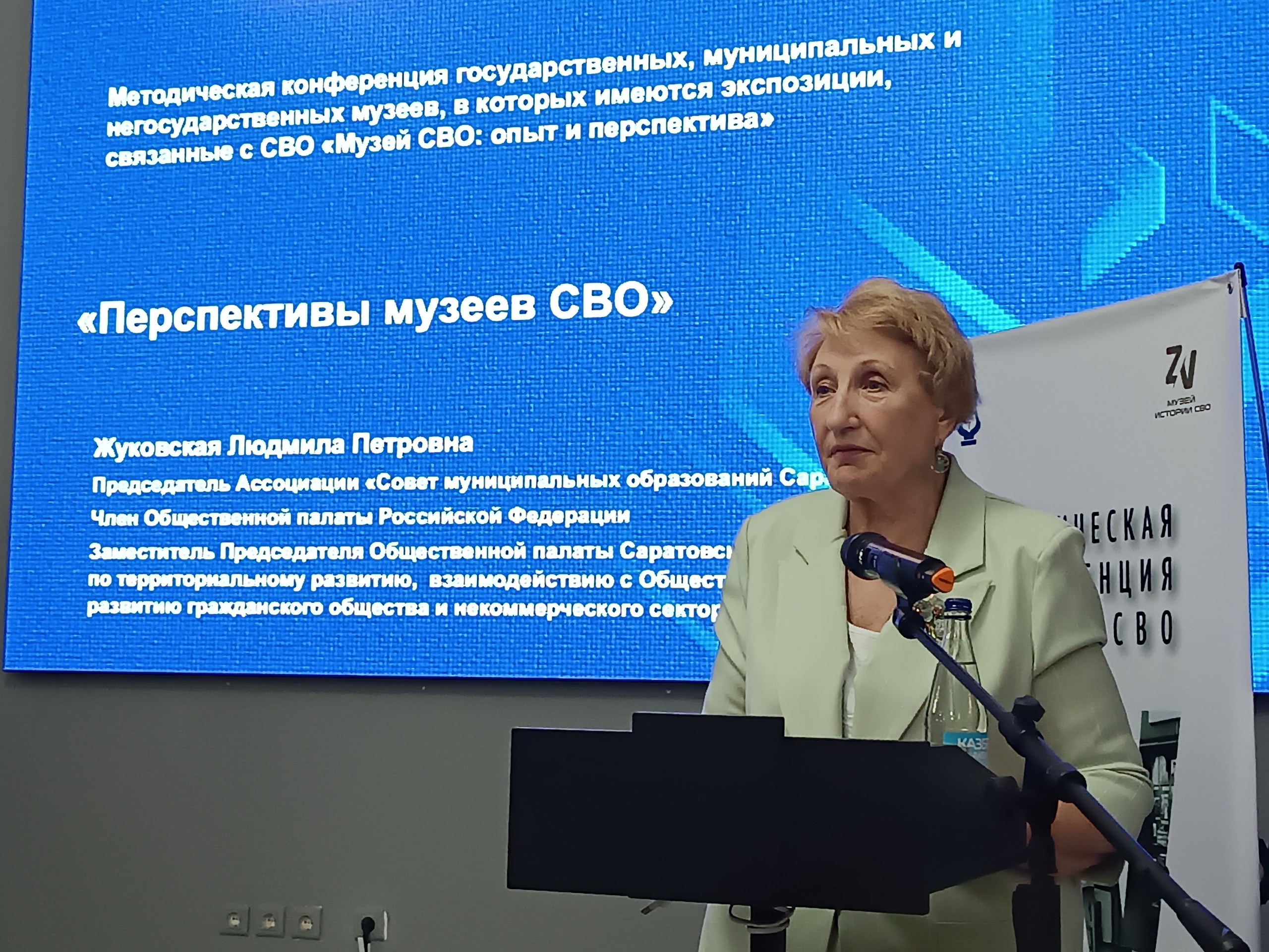 В докладах выступающих были подняты темы создания и деятельности музеев СВО, а также перспективы развития таких учреждений. В частности, об этом рассказали заместитель директора по научной работе саратовского Исторического парка Гришанина Ольга Васильевна и председатель Ассоциации «Совет муниципальных образований Саратовской области», член Общественной палаты Российской Федерации Жуковская Людмила Петровна.