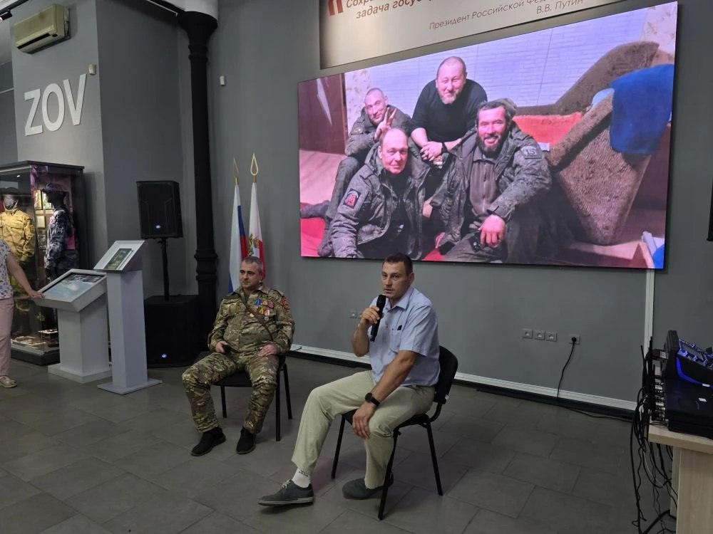 В музее прошла очередная встреча с участниками СВО в рамках цикла мероприятий «Время героев». Гостями в этот раз стали командир отделения Александр Евгеньевич Целихин и стрелок Руслан Анатольевич Пожидаев. Оба бойца служили в батальоне «Барс-15», сражались на Покровском направлении.