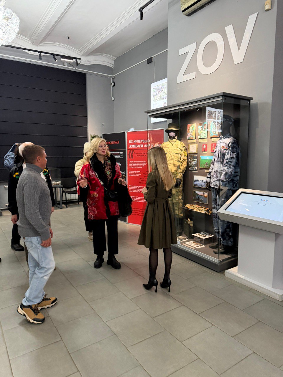 Директор учреждения Наталья Речман рассказала почетным гостям историю создания музея СВО, провела экскурсию по основной экспозиции, показала работающие выставки. Артисты с большим вниманием и интересом ознакомились с экспозицией, в которой история раскрывается через подлинные предметы, документы и интерактивные технологии.