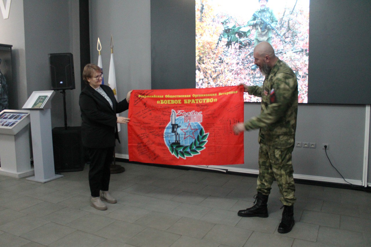В завершении мероприятия Александр Колесников передал музею фронтовые флаги с подписями бойцов своего отряда.